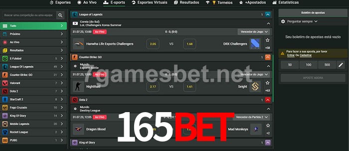 O 165bet oferece uma grande seleção de opções de apostas em e-sports com probabilidades competitivas